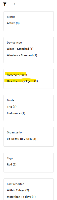 Once assigned you will see all vehicles with a recovery agent assigned in the filters on the left and side for easy filtering to see them.